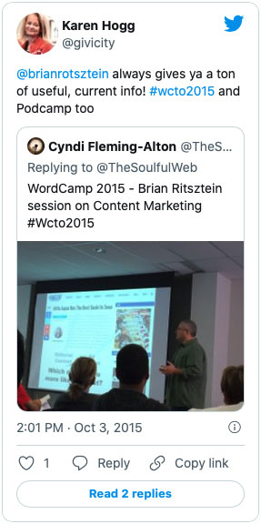 I met Brian at WordCamp Montreal, where I enjoyed his presentation on SEO. He explained it in plain language and even made it sound fun. Brian is generous with his extensive knowledge of SEO and internet marketing, willingly sharing his expertise at conferences and social events. He also presents these details in bite sized pieces, so that a novice like myself doesn't feel overwhelmed. Brian's innate curiosity and enthusiasm for life make him a pleasure to work with.